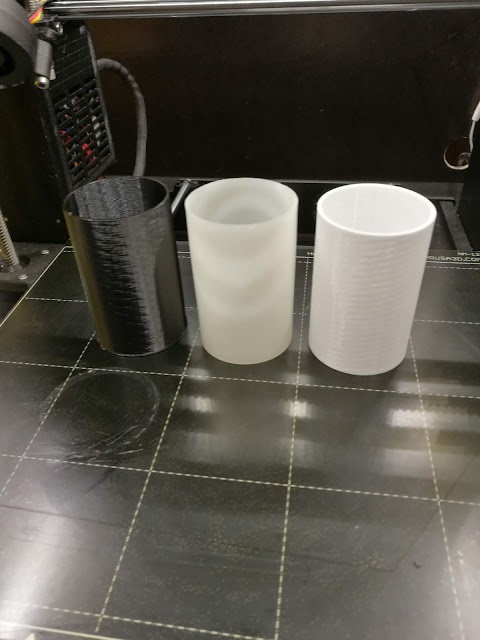 Viimeinen oikealla on PETG 0.6mm suutin ja 0.35mm kerros. Tarkoittaa että koira valmistui puolessa ajassa, ja silti jopa tuo piskuinen naama on siedettävä. En ole mitään pikkutarkkaa noilla 0.2 kerroksilla vielä hinkannut, mutta tässä valossa iso suutin ei hommaa pilaa. Täytynee tämä kuuluisa naama 0.2 täräyttää joskus, saa oikean eron suuttimien välille.